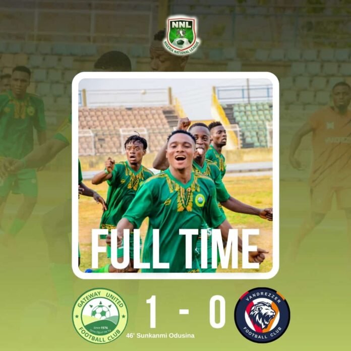Sunkanmi Odusina scored the only goal of the game as Gateway United pipped visiting Vandrezzer Football Club 1-0 today at the MKO Abiola International Stadium, Kuto Abeokuta.